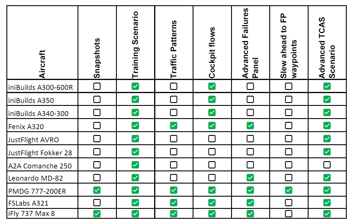 Check the full list of supported aircraft on the product page for each simulator.